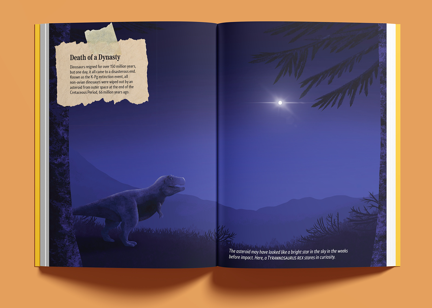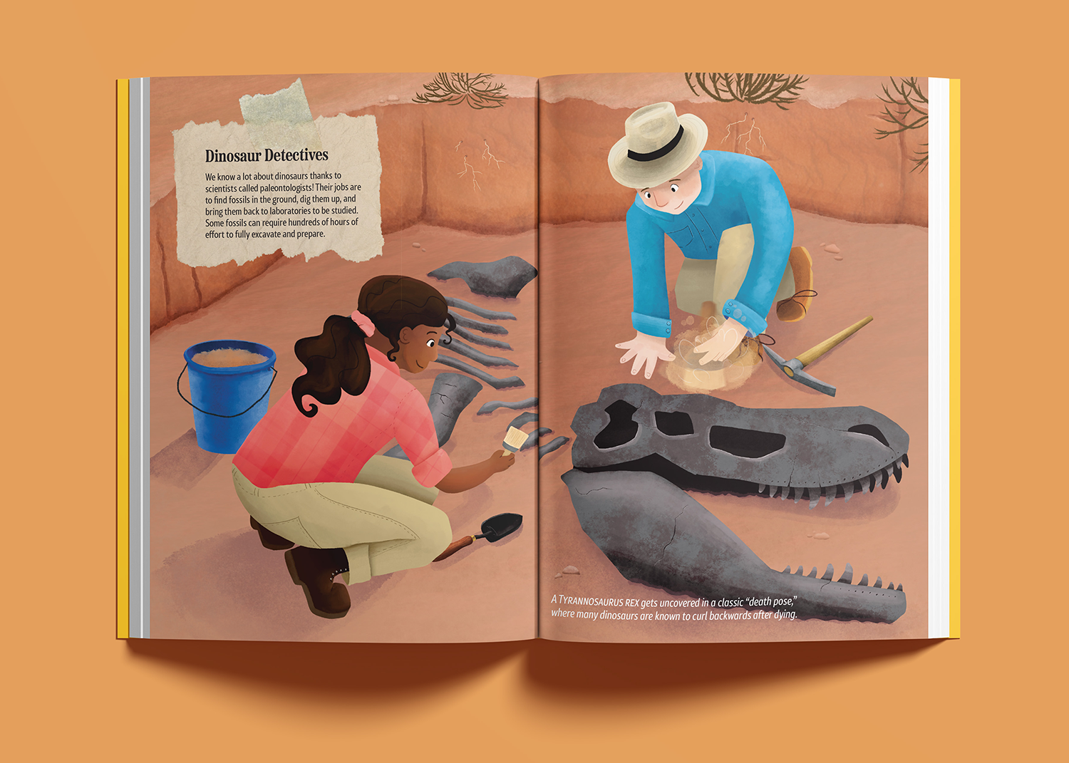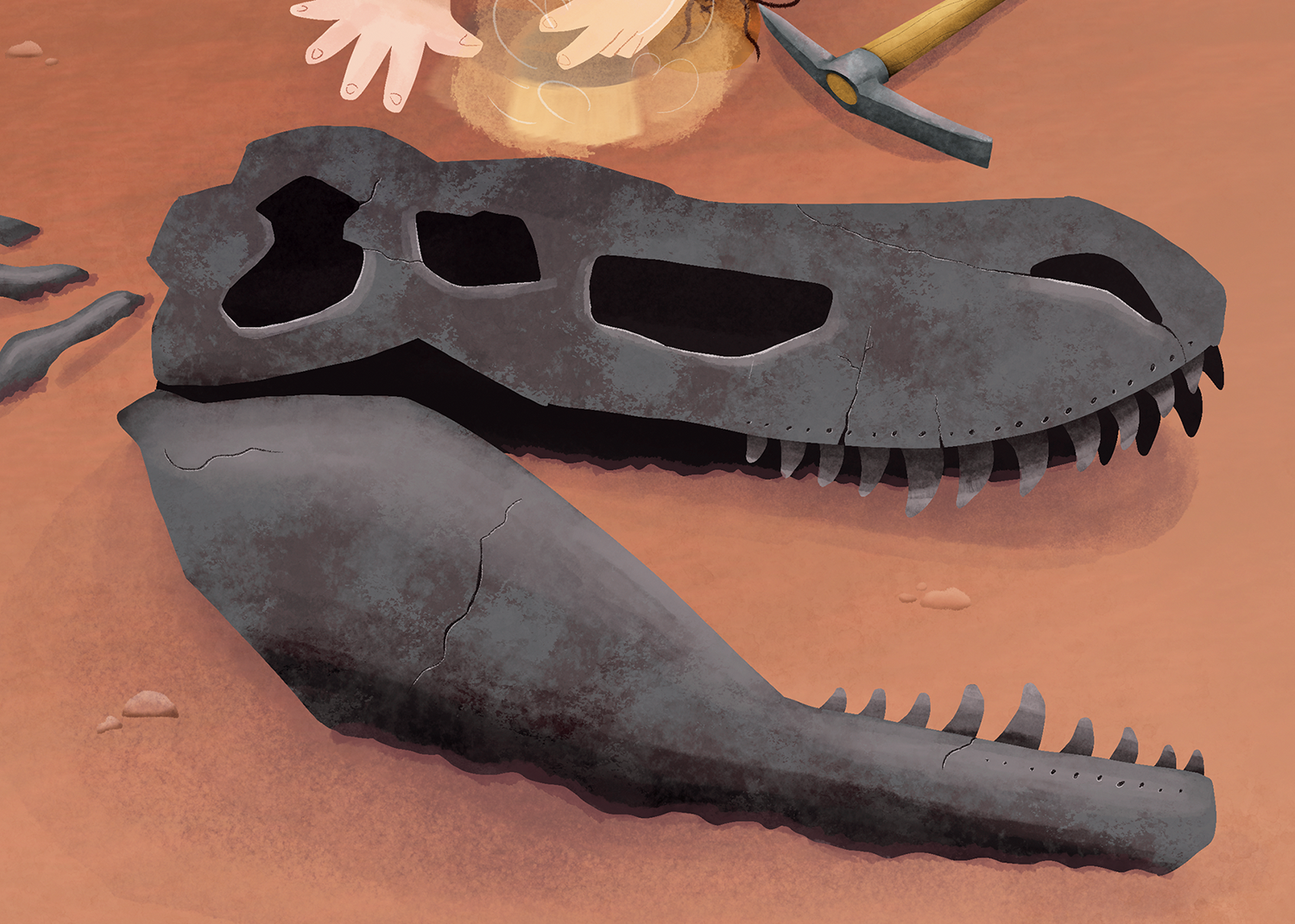 I always welcome an opportunity to include dinosaurs in my work. I wanted to work on a passion project that made me reminisce on all of the media that made me fall in love with paleontology. I created a series of full page spreads for a speculative children’s book on dinosaurs and the study of them.